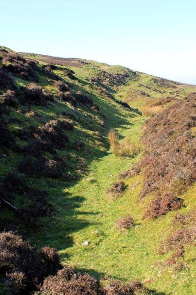 Penycloddiau is the largest hillfort on the Clwydian Range and one of the largest in Wales, enclosing an area of 21 hectares.. Follow the signs for Llangwyfan, continue on this small country road through the village and onwards to a small car park 1/4 mile from the site. The fort can be accessed directly as Offa's Dyke National Trail.