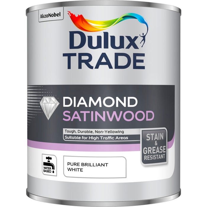 Dulux Trade Diamond Satinwood is a tough & durable satin finish paint, which provides excellent protection from stains, scratches and grease. The water-based formulation makes it suitable for use in high traffic areas, such as corridors, stairways and access areas with the added benefit of being quick drying and low odour.