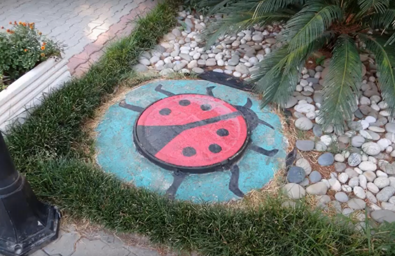 The space around the stone can be further decorated, especially if the drain cover is placed in a prominent place. Use boxes of artificial grass to hide your raised drain cover. You can decorate the drain cover with the help of stump. The stump can be made with your own hands. Or you can buy a stump made of glass-plastic.