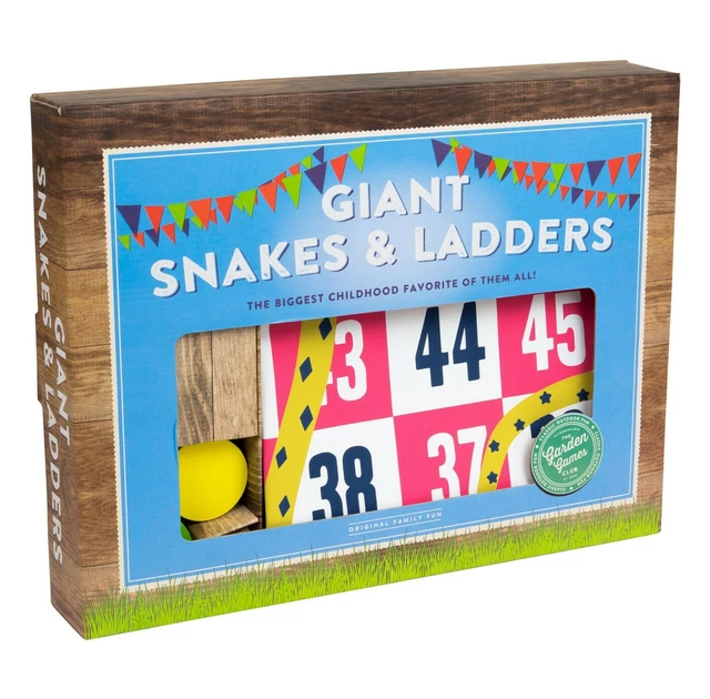 Giant Snakes & Ladders. With a giant game board, large foam dice and 4 giant playing pawns this giant edition of the all-time great Snakes & Ladders is not only super fun to play, but is also a great way to teach children to count. The oversized board and pieces really make the game come alive and is classic entertainment the entire family will.
