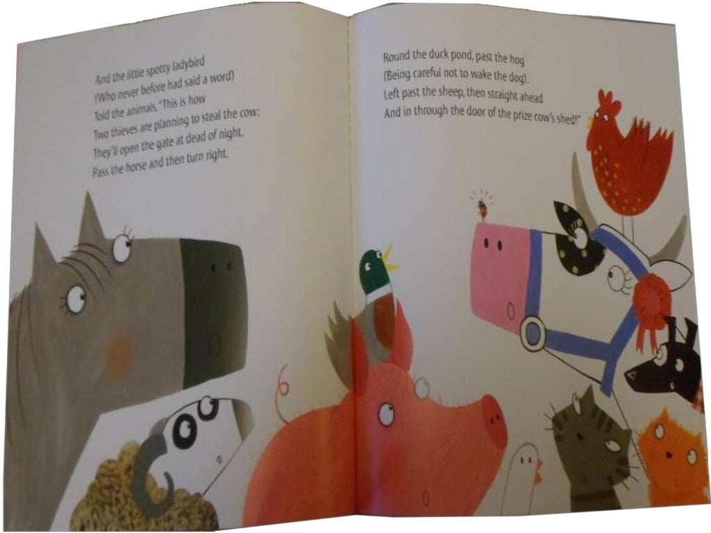 What the Ladybird Heard. Author: Julia Donaldson Illustrator: Lydia Monks. The animals on the farm are always noisy, all except for the ladybird who never says a word. But when burglars plot to steal the farmer's fine prize cow, it's the quiet ladybird who comes up with the perfect way to stop their dastardly plan! This lively rhyming story is.